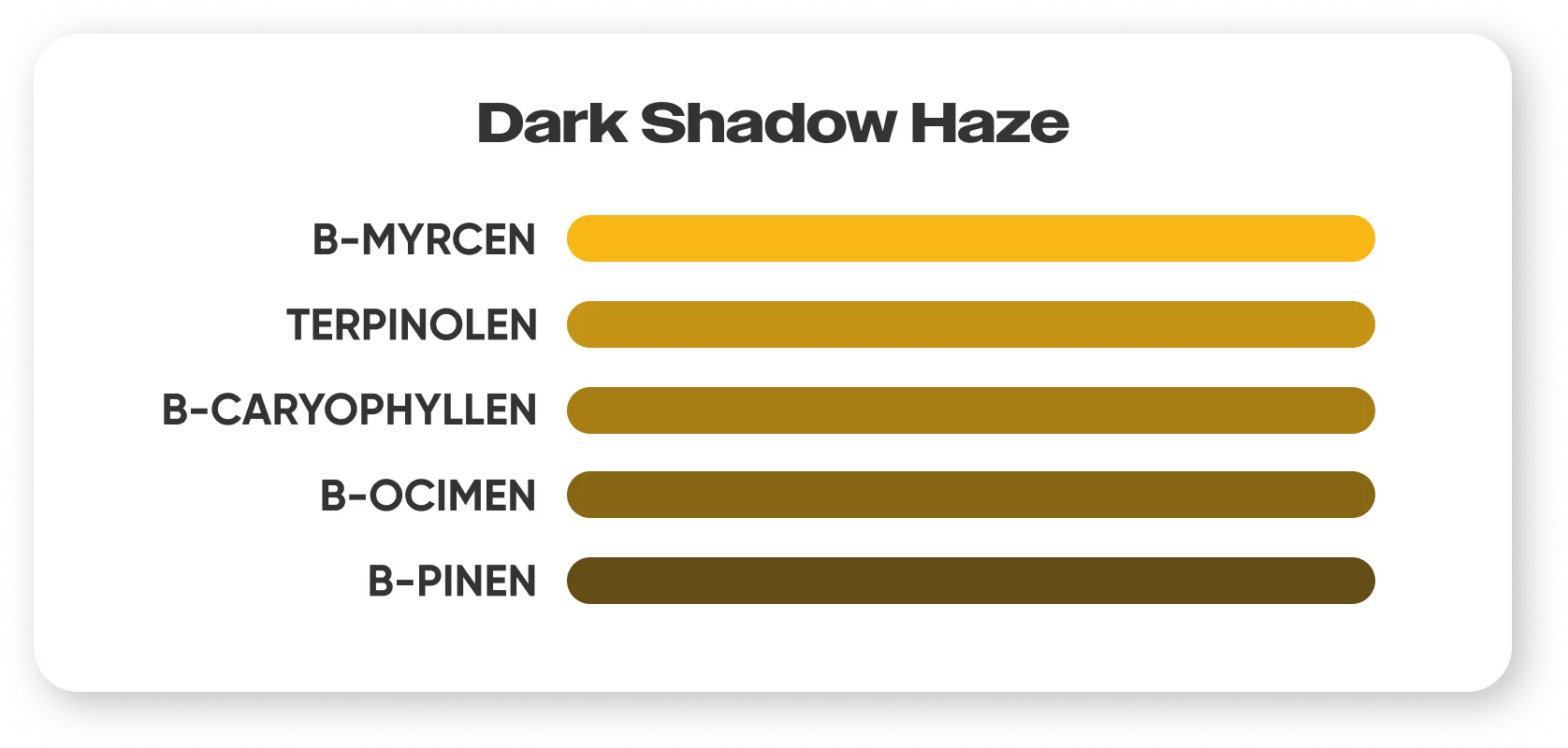 Zu den wichtigsten Terpenen in Dark Shadow Haze gehören: