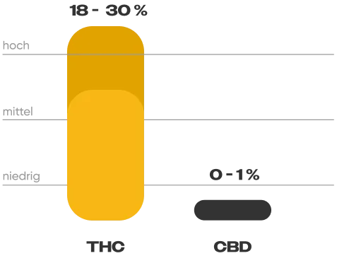 Gorilla Glue hat einen hohen THC-Gehalt zwischen 18 und 30 %. Der CBD-Gehalt liegt zwischen 0 und 1 %.