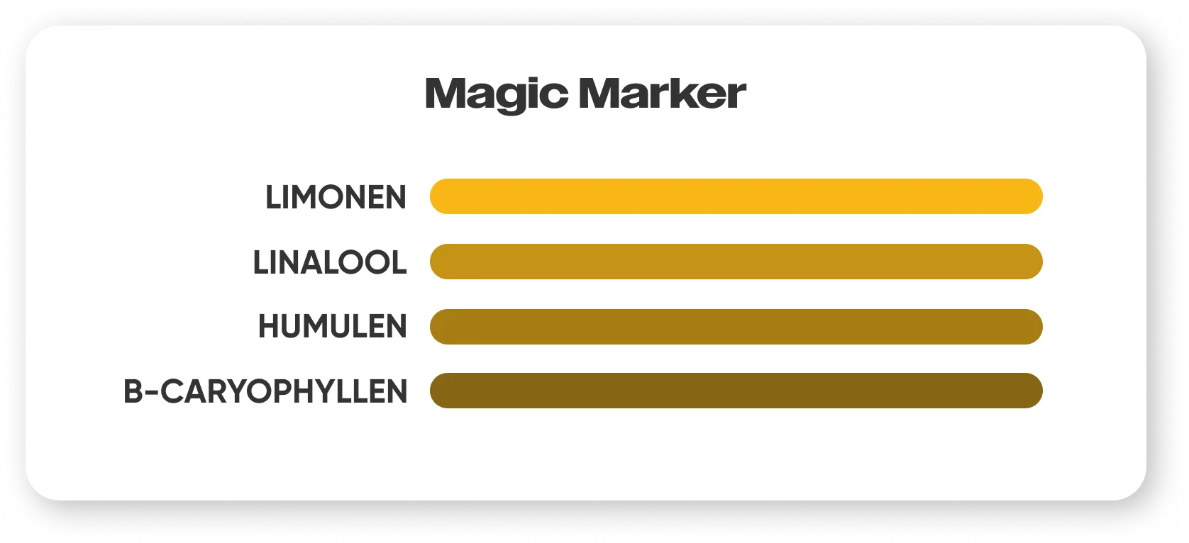 Zu den wichtigsten Terpenen in Magic Marker gehören:
