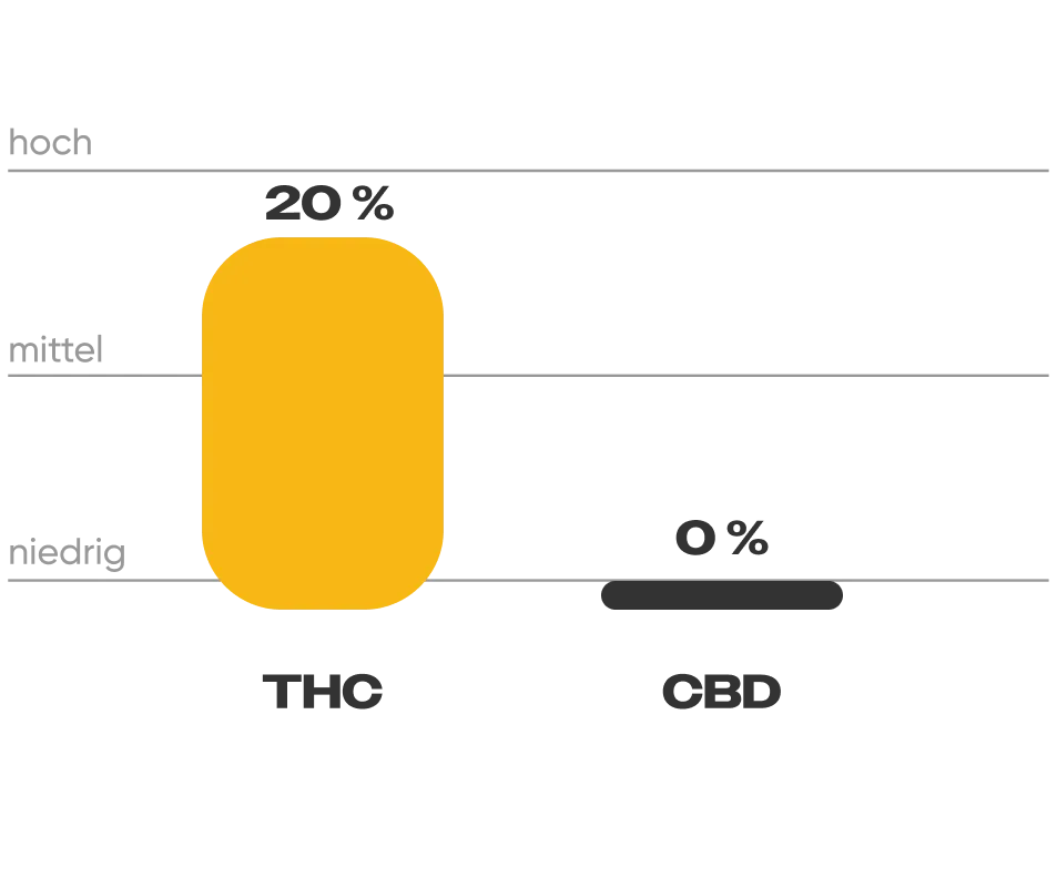 Mango Haze enthält etwa 20 % THC und nahezu 0 % CBD.