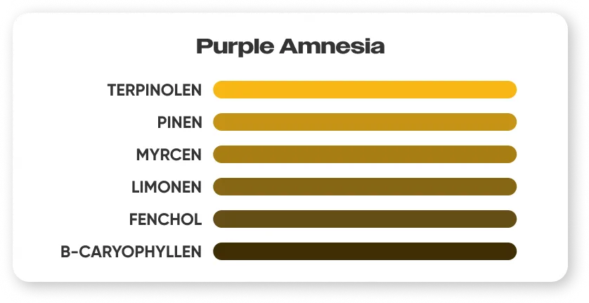 Zu den wichtigsten Terpenen in Purple Amnesia gehören: