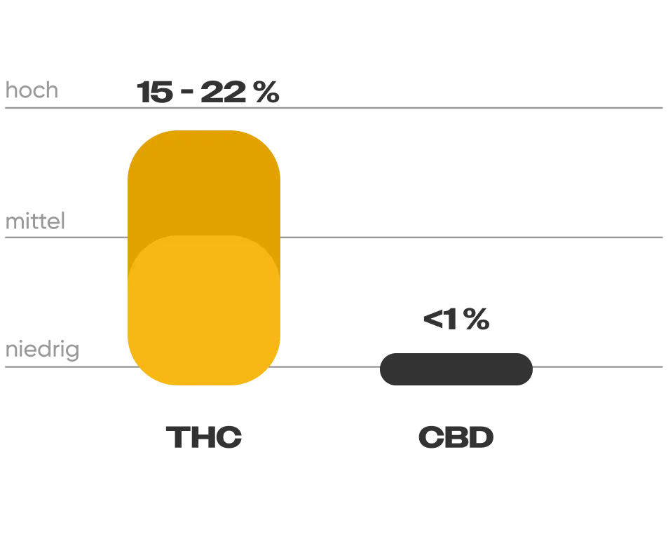 Tropicana Cookies hat einen hohen THC-Gehalt zwischen 15 und 22 %. Der CBD-Gehalt liegt bei weniger als 1 %.